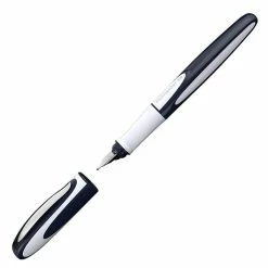 Schneider’s Ray Cartridge Fountain Pen features a modern design barrel and a rubberized grip for comfortable writing. This pen has a high quality stainless steel tip (Medium). The barrel color is dark blue & light grey. The pen contains one royal blue standard ink cartridge and is refillable with any “international size” fountain pen ink cartridge