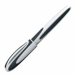 Schneider’s Ray Cartridge Fountain Pen features a modern design barrel and a rubberized grip for comfortable writing. This pen has a high quality stainless steel tip (Medium). The barrel color is white and dark gray. The pen contains one royal blue standard ink cartridge and is refillable with any “international size” fountain pen ink cartridge