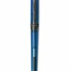 This pen features hues of blues and green, accented with a heavy coat of 18k gold plated trim. Each pen has its own color pattern and design due to the nature of its resin.