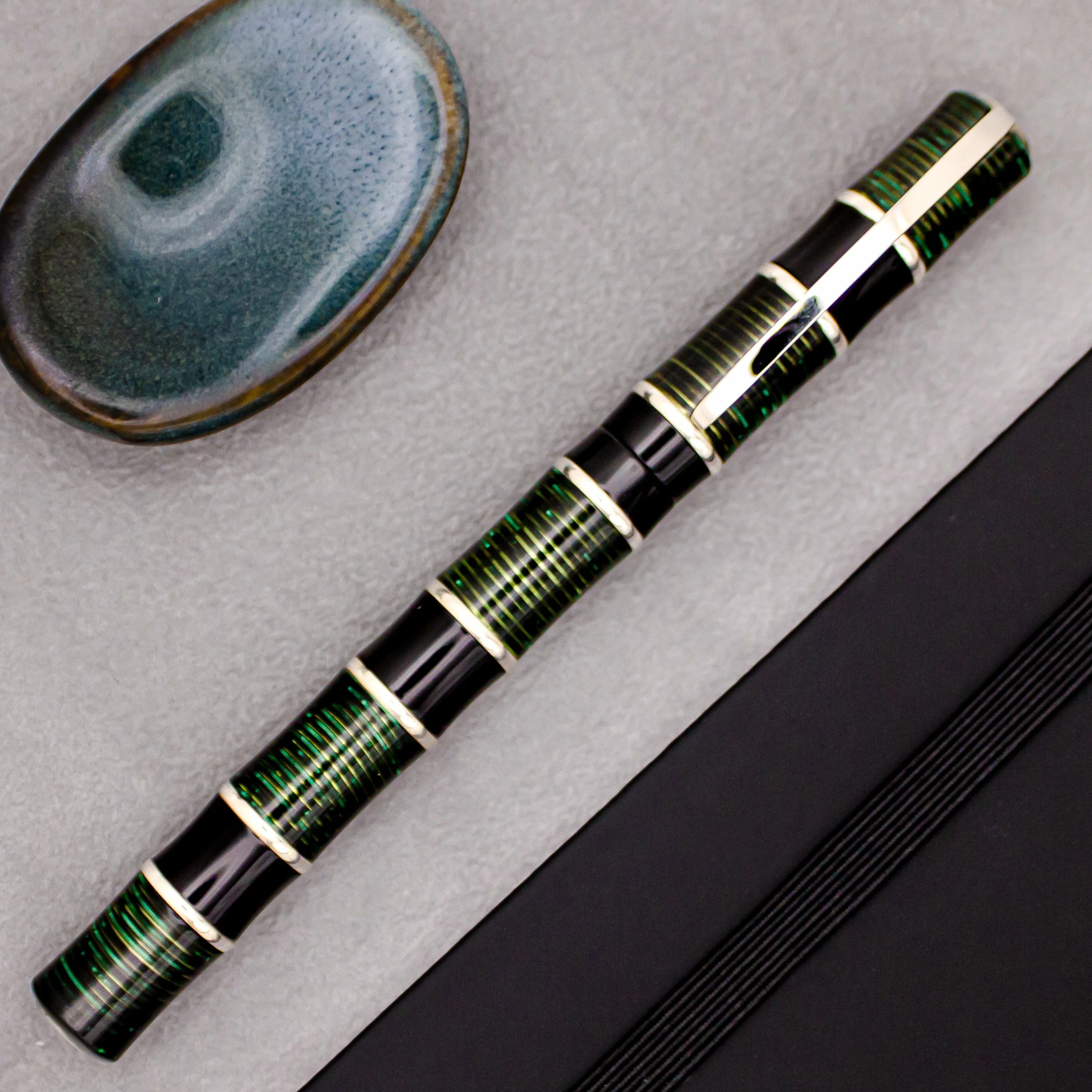 Visconti is pleased to introduce the Asia Bamboo, a unique collection of fountain pens inspired by one of natures most wondrous gifts to mankind and the charm of Asia’s magnificent landscapes that it is home to. Bamboo cane is a plant of notable economic and cultural significance. Primarily found in South East Asia bamboo is known for its uses in construction, as a sustainable food source and its ability to reduce soil pollution. Visconti celebrates the bamboo plant with a unique collection of pens made from one of fine writings most iconic materials, ‘stacked’ celluloid.